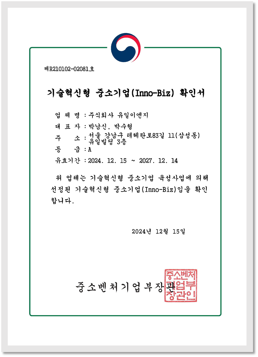 기술혁신형 중소기업(Inno-Biz) 확인서 |